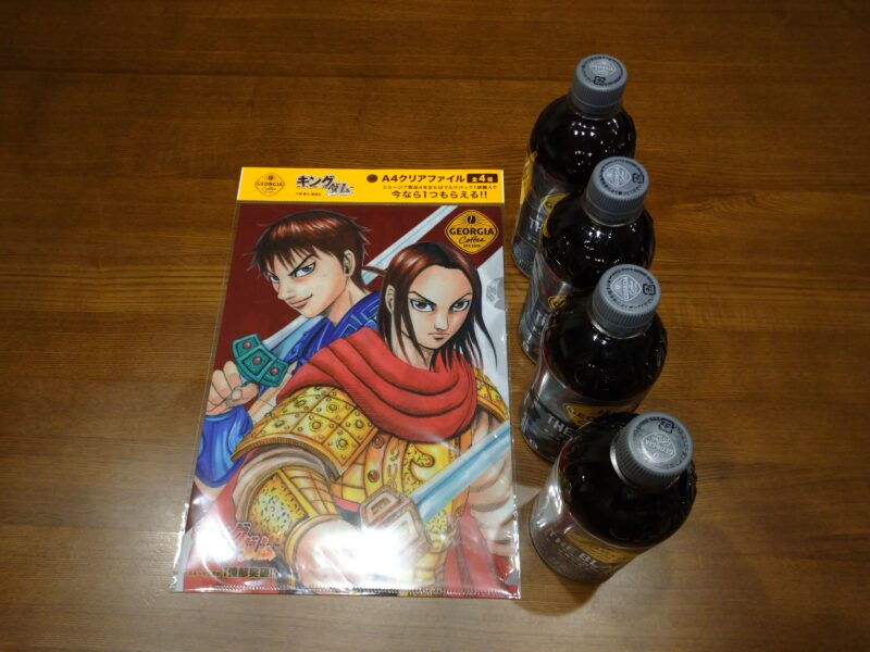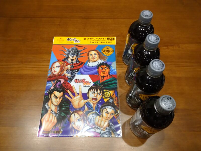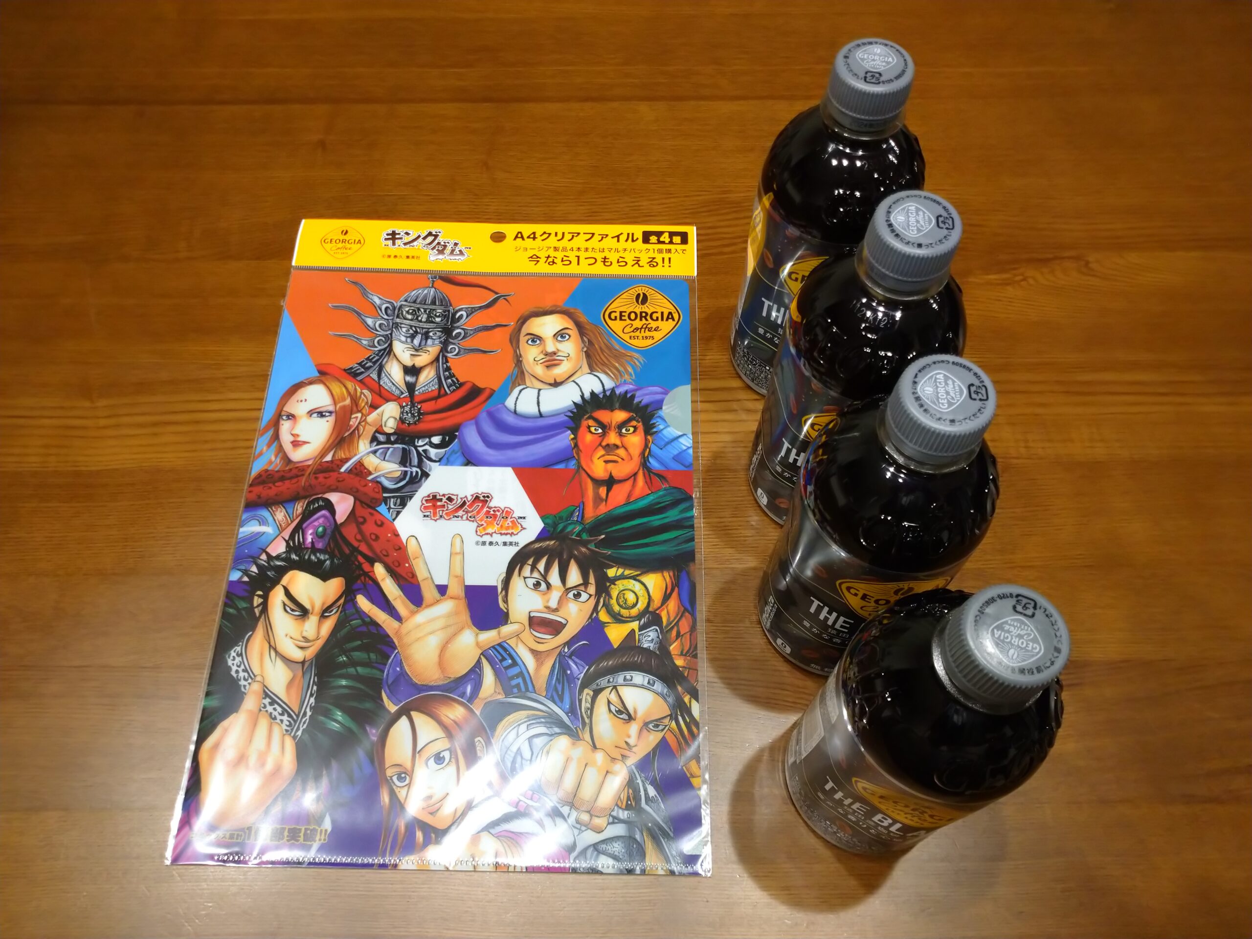 どーも、ゆきぞーです! いつから始まったのか定かではありませんが、10~11月にかけてペットボトルコーヒー購入時にキングダムのA4クリアファイルがもらえました。